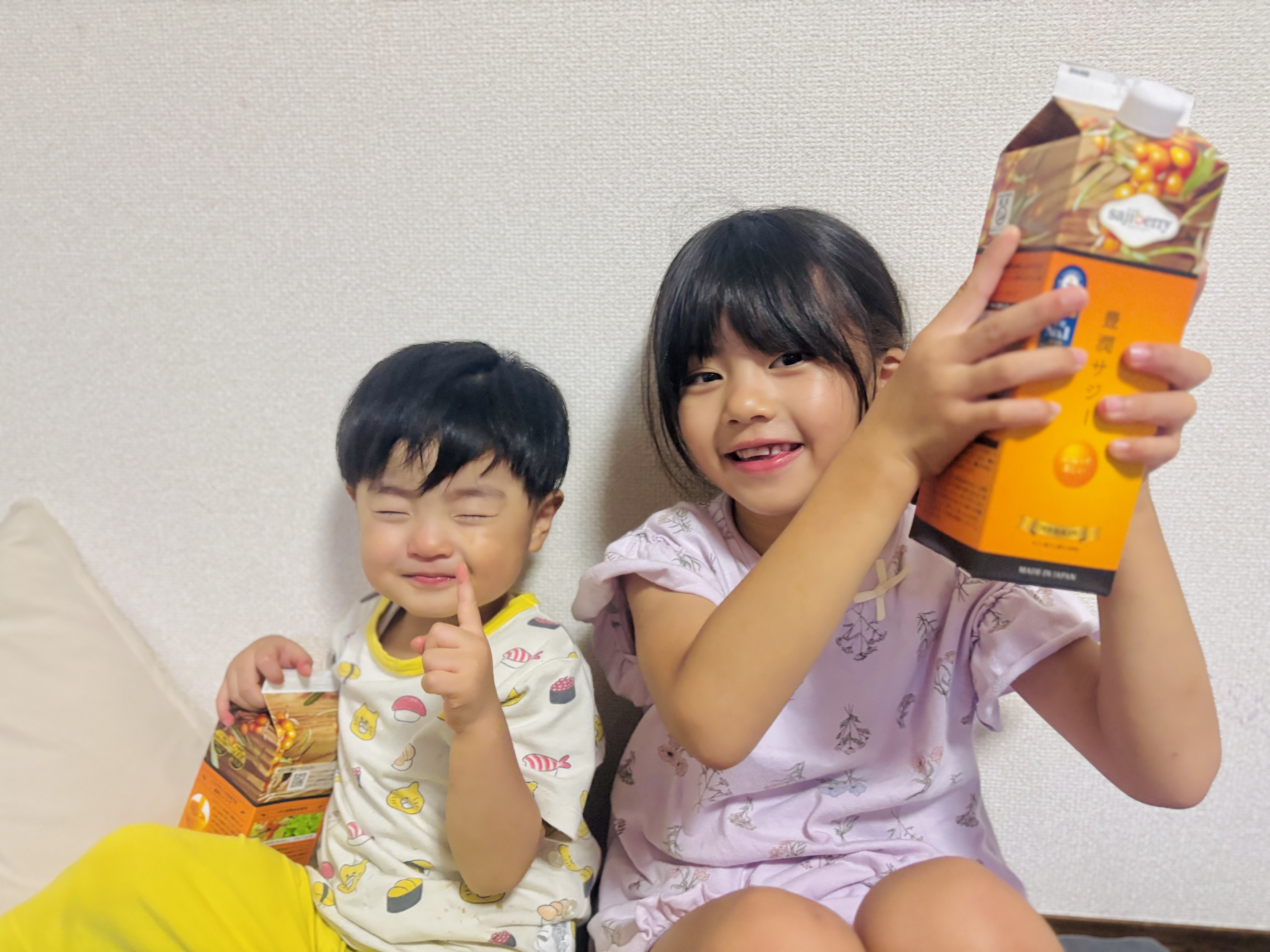 6歳と3歳になる子どもと一緒にサジーを飲んでます!