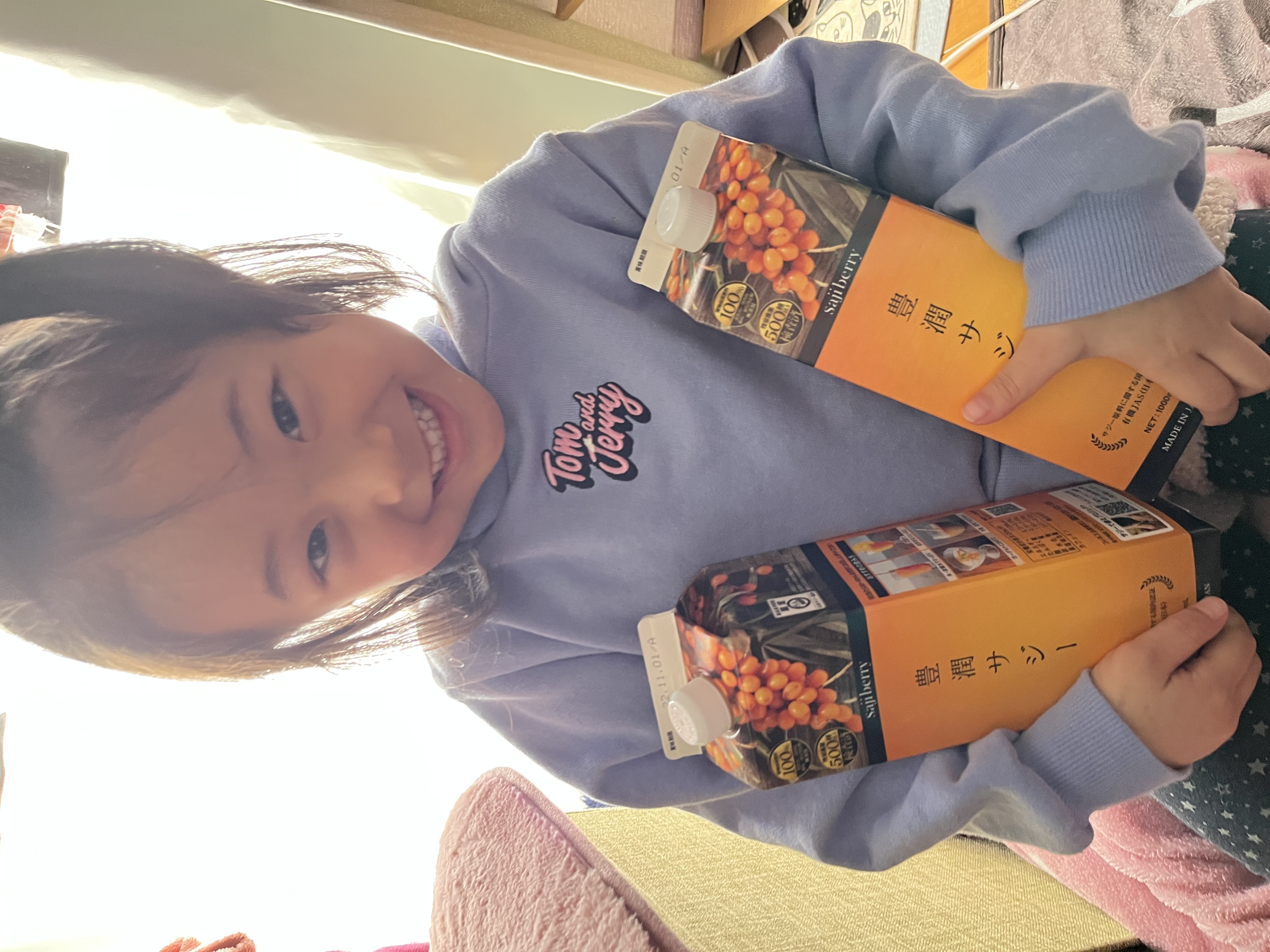 一歳になった娘も大好きで、豆乳で割ったサジーを朝一緒に飲んでいます。