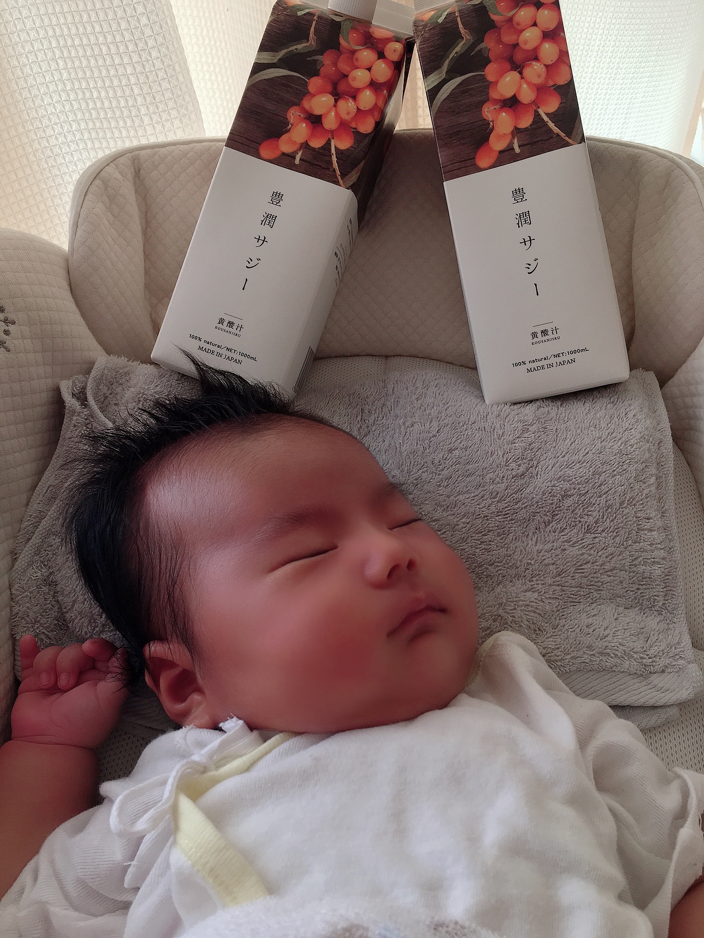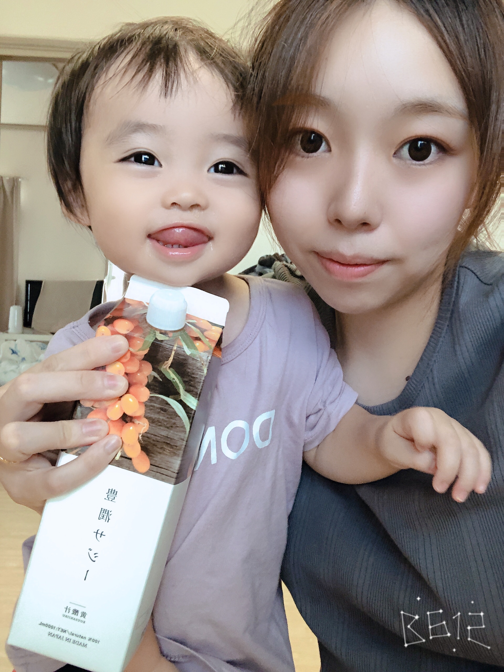 落ち着きだした頃また再開したんですが、毎日飲んでるサジーに興味津々な娘笑