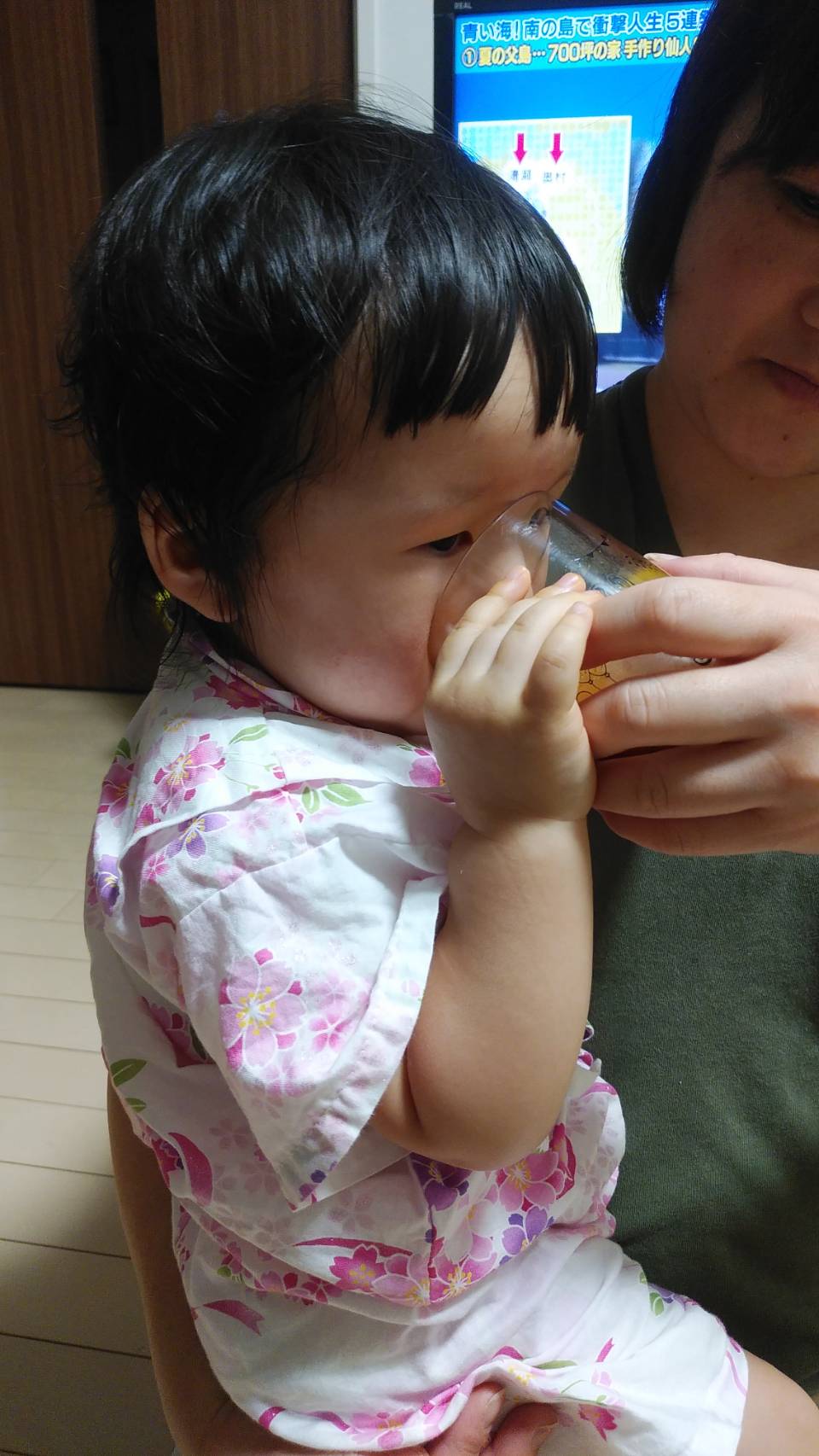 1歳を過ぎた娘と一緒に飲んでいます!