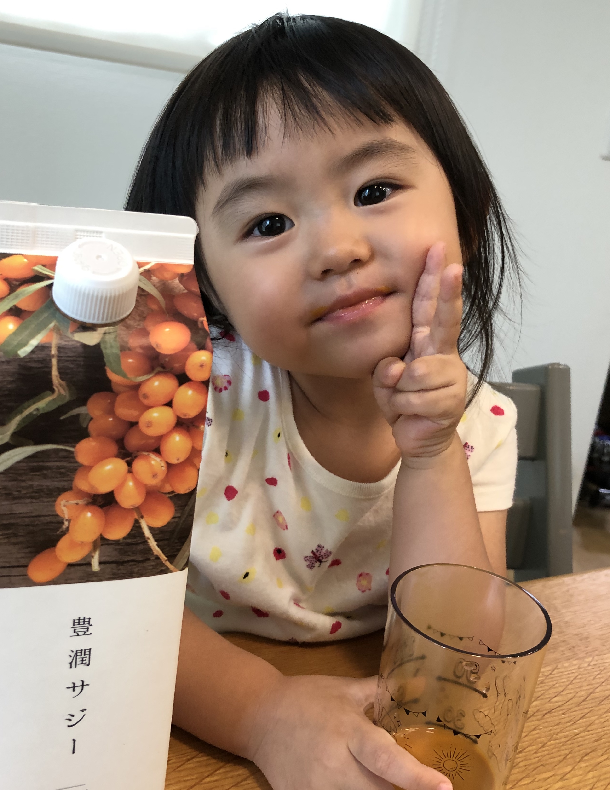ちなみに2歳の娘もサジージュースが大好きで朝は2人で乾杯☆